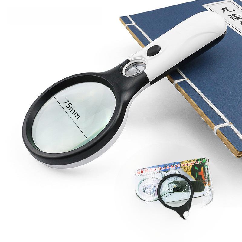 Лупа для чтения Chuda 3LED с 4 вариантами цвета, Модель 6902AB, 45X Двойная линза, 75 мм — купить товар онлайн с бесплатной доставкой по всему миру!