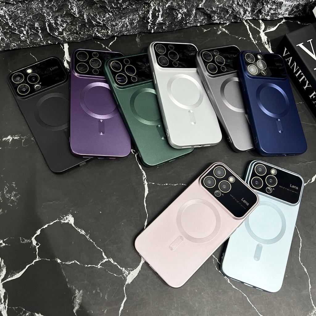 Подходит для iPhone 15 Металлическая краска с мелкими отверстиями Большое окно Apple 14 Магнитная присоска Magsa ТПУ с защитой от падений Чехол