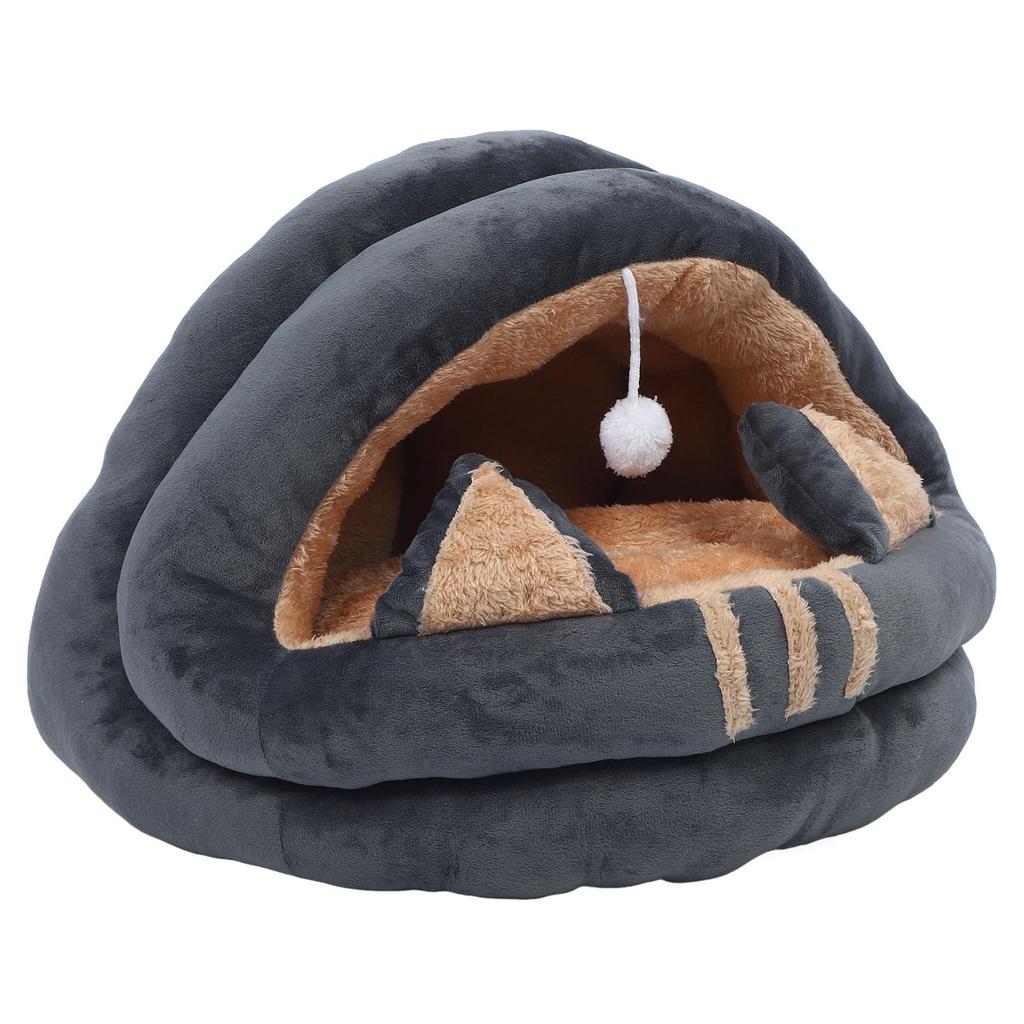 Кошачья пещера полузакрытая уютная кровать для домашних животных мультяшный моющийся домик для животных на осень и зиму серый