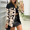 HNXC Женские винтажные повседневные куртки и пальто с решетчатым принтом, осенне-зимние куртки-поло с длинными рукавами и воротником