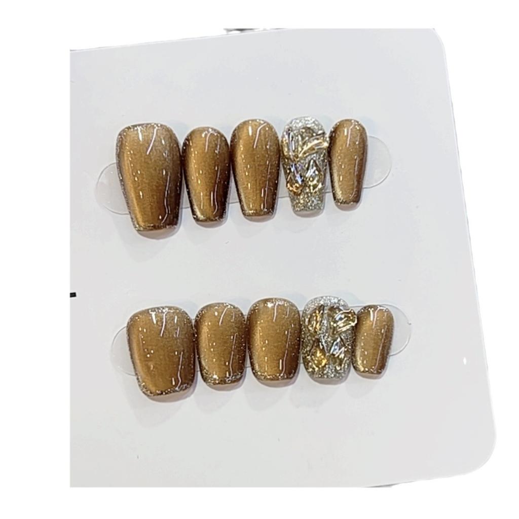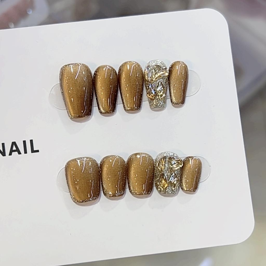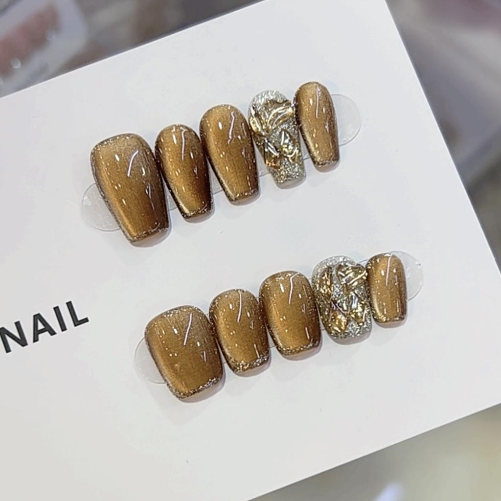 Чисто ручная работа Осень Новинка Фототерапия Носимые Ногти Кошачий Глаз Кокос Какао Патч для Нейл-арта Съемный