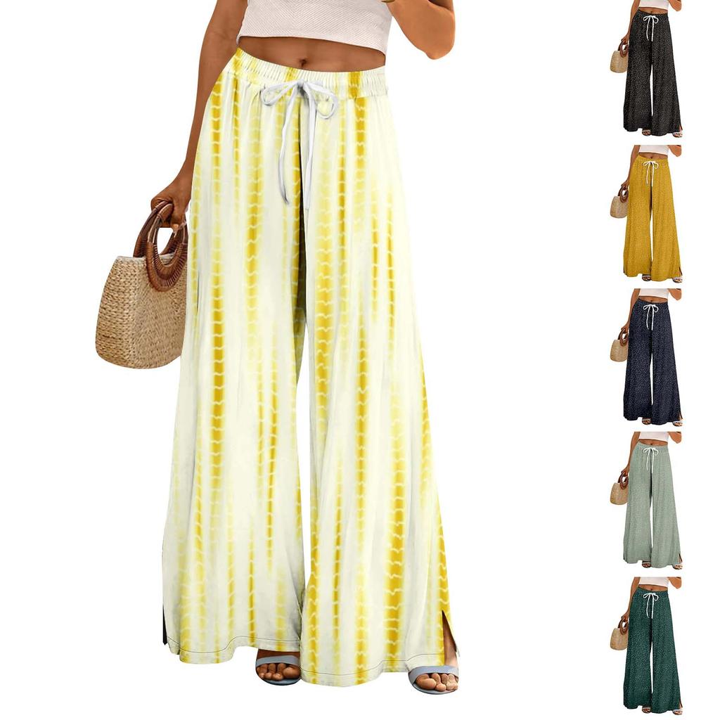 Женские летние брюки-палаццо в стиле бохо с высокой талией, широкие повседневные брюки с цветочным принтом и карманами — купить товар онлайн с бесплатной доставкой до всему миру!