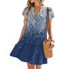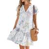 Женские платья с коротким рукавом и V-образным вырезом с цветочным принтом Свободные повседневные пляжные платья в стиле темперамент