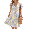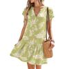 Женские платья с коротким рукавом и V-образным вырезом с цветочным принтом Свободные повседневные пляжные платья в стиле темперамент