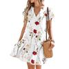 Женские платья с коротким рукавом и V-образным вырезом с цветочным принтом Свободные повседневные пляжные платья в стиле темперамент