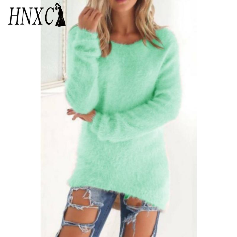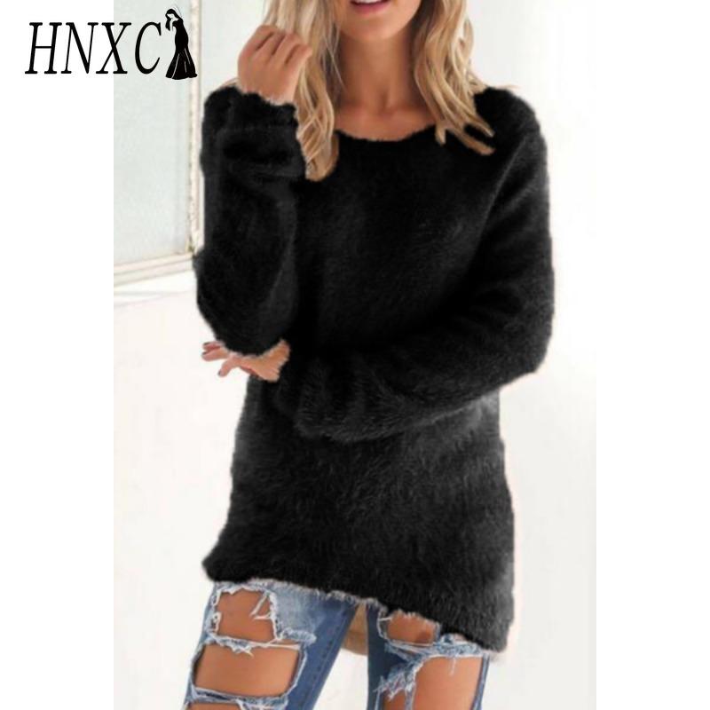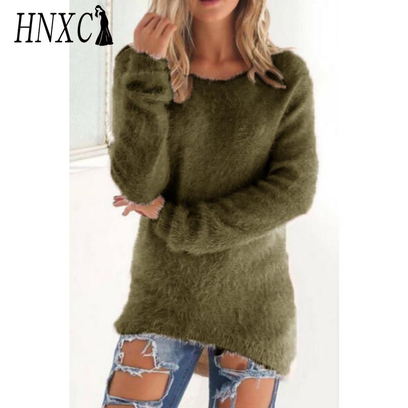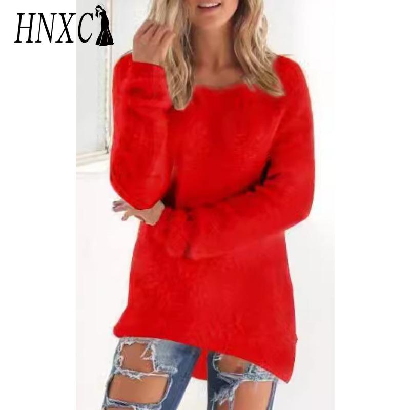 HNXC Женские модные повседневные однотонные свободные свитера с круглым вырезом и осенне-зимним принтом с длинными рукавами
