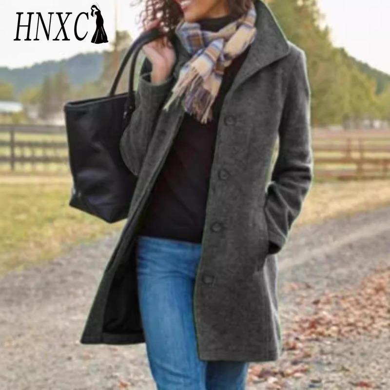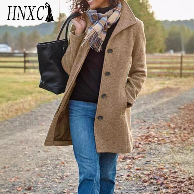 HNXC Женские винтажные повседневные куртки и пальто с решетчатым принтом, осенне-зимние куртки-поло с длинными рукавами и воротником