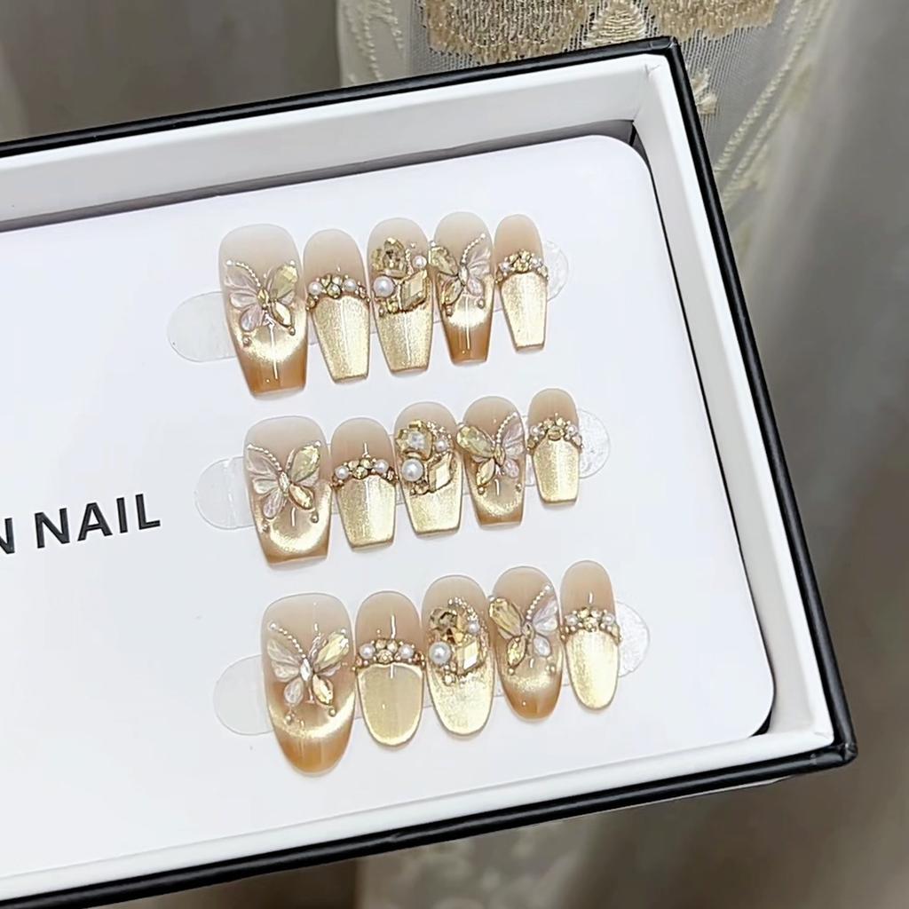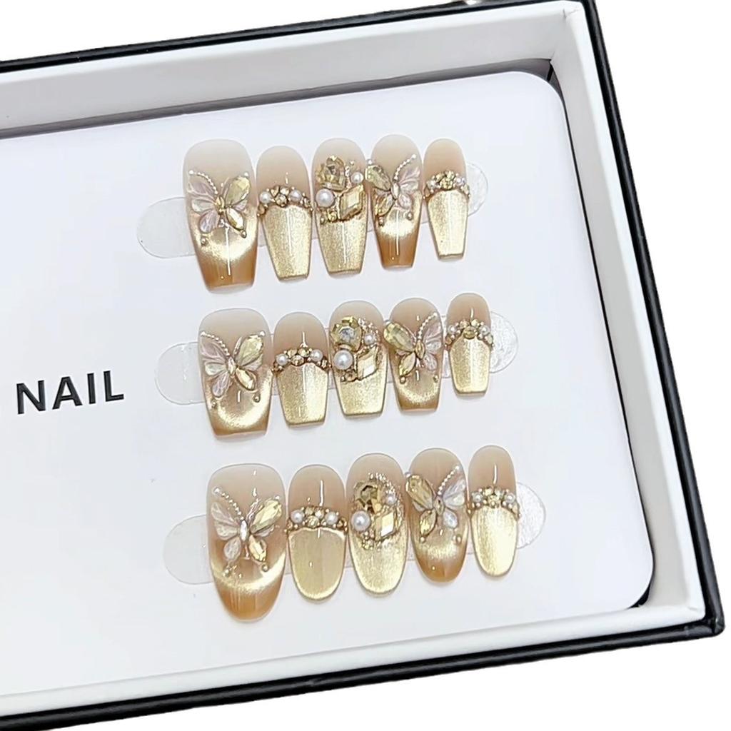 Pure Handmade Phototherapy Nail Art Golden Butterfly Wear Nail Finished Cat Eye Nail Art Patches Show Whiteness and Temperament
