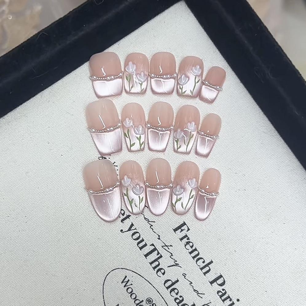 Ручной вязки Броня Розовый Тюльпан Кошачий глаз Расписанный вручную Мигающий Чистый Похотливый Темперамент Отбеливающий Накладной ноготь