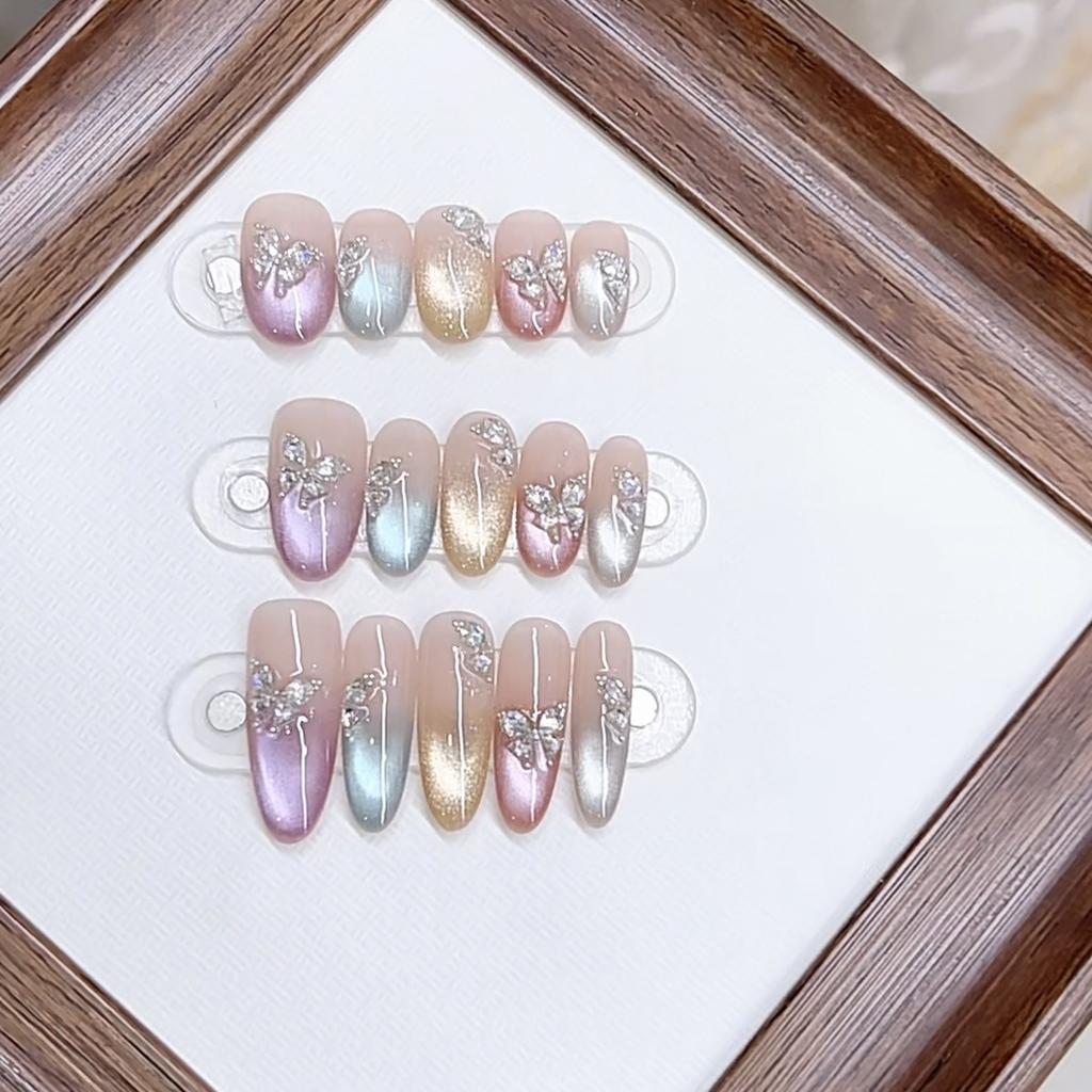 Плетеные доспехи Новая красочная бабочка Красочный светоотражающий циркон Бриллиант Кошачий глаз Маникюр Наклейка