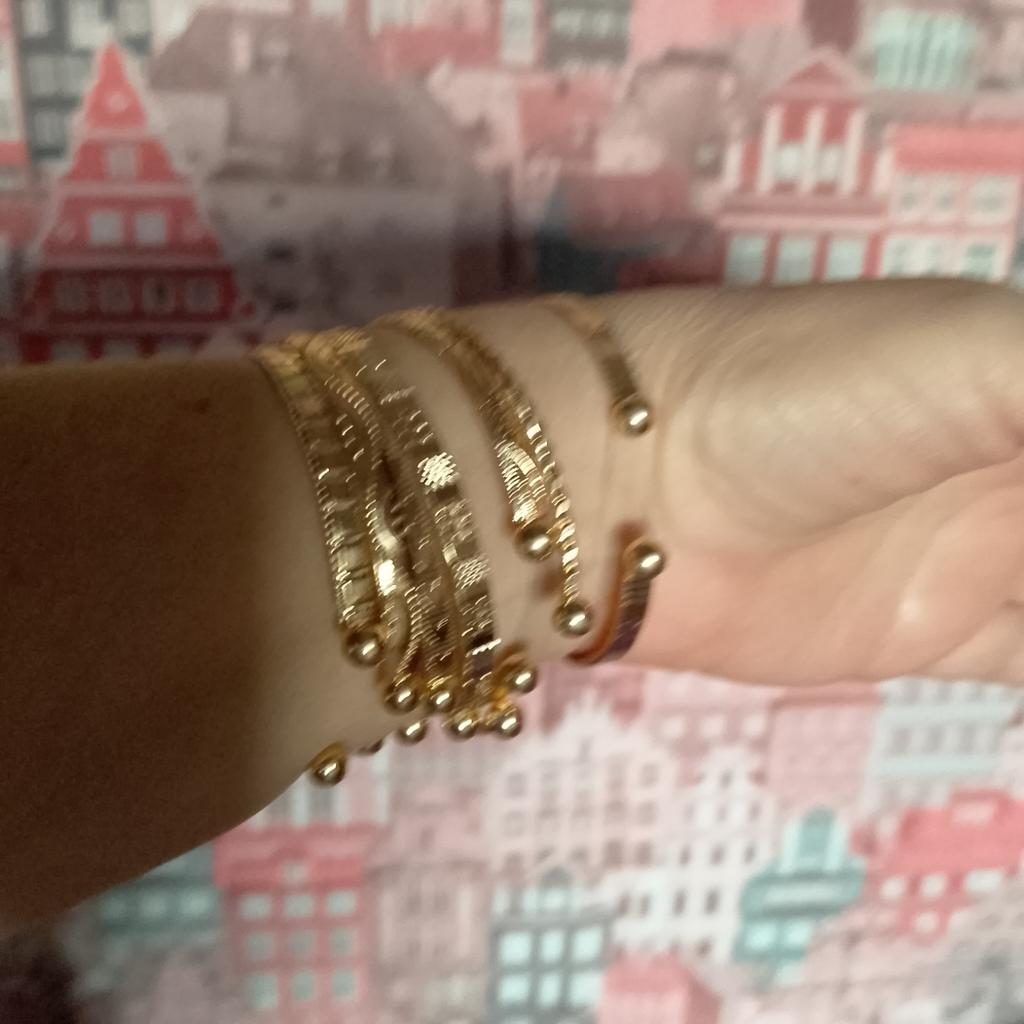 Браслеты красивые,можно разогнуть пошире или согнуть поуже. У меня рука с косточкой 16 см. По размеру норм. Самый узкий пошире, остальные поуже. Спасибо, рекомендую!