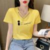 Женская футболка 2025 года в корейском стиле с V-образным вырезом и короткими рукавами, однотонная
