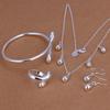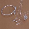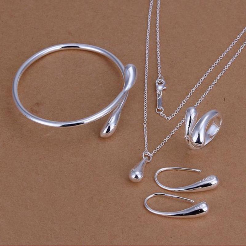 Европейский и американский модный посеребренный набор украшений: Изысканный каплевидный браслет, ожерелье, серьги и кольцо
