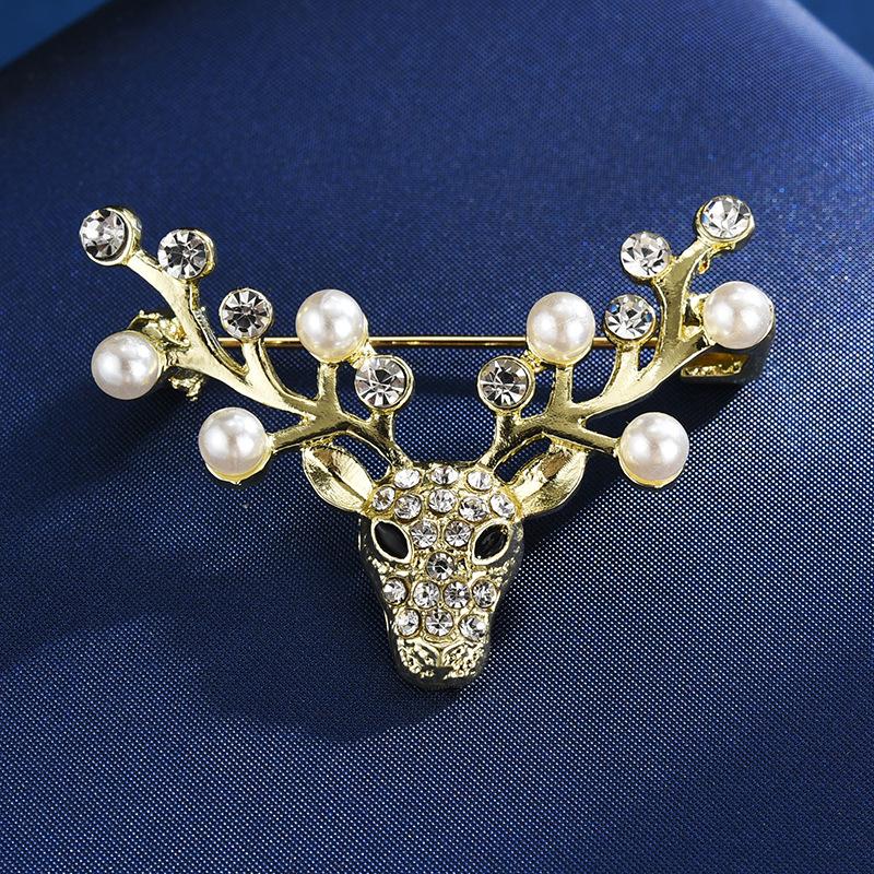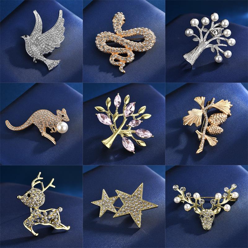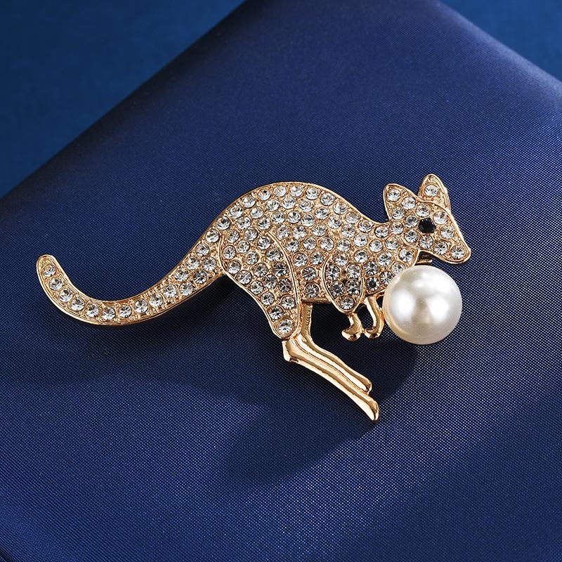 Элегантная брошь с жемчугом и стразами: Дизайн Олень и Кенгуру, Высококачественная брошь-булавка для костюма с защитой от обнажения