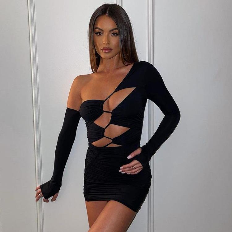 Сексуальное бандажное мини-платье с длинным рукавом и вырезом для клубной вечеринки, облегающий наряд, шикарная одежда