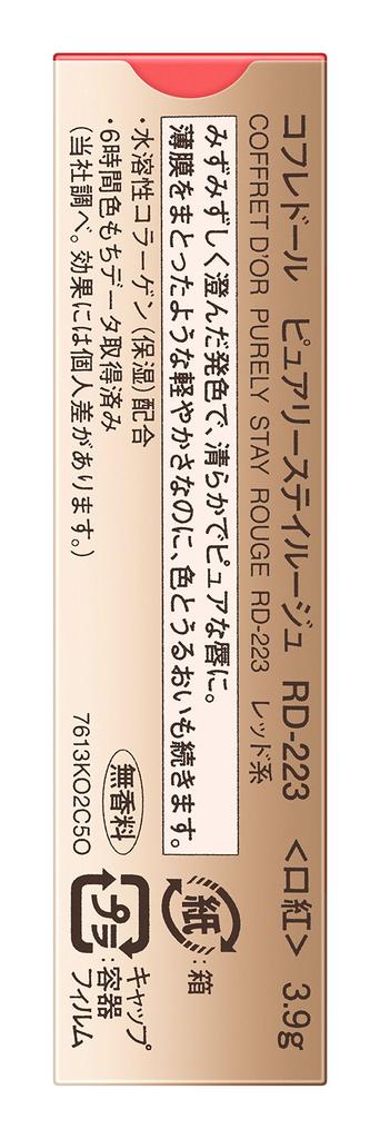 All ingredients: Dipentaerythrityl tetraisostearate, tri(caprylic acid/capric acid)glyceryl, octyldodecanol, di(phytosteryl/octyldodecyl) lauroyl glutamate, isotridecyl isononanoate, hydrogenated polyisobutene, paraffin, bisalkyl(C16-18)glyceryl undecyl dimethicone, di(octyldodecyl/phytosteryl/behenyl) lauroyl glutamate, synthetic wax, microcrystalline wax, PEG-12 dimethicone, hydrogenated microcrystalline wax, diisostearin Polyglyceryl-2, PEG-8 trifluoropropyl dimethicone copolymer, ethylhexyl hydroxystearate, squalane, jojoba seed oil, olive fruit oil, (ethylene/propylene) copolymer, polyethylene, water-soluble collagen, (+/-) agar, gunjo, silica, mica, sodium lauroyl aspartate, lauroyl lysine, zinc chloride, titanium dioxide, iron oxide, barium sulfate, isopropyl titanium triisostearate, tin oxide, calcium aluminum borosilicate, synthetic fluorophlogopite, yellow 4, yellow 5, red 201, red 202