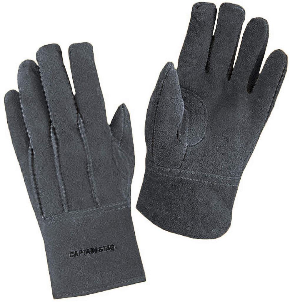 Перчатки Captain Stag для кемпинга на открытом воздухе, барбекю, из мягкой кожи, коровья кожа, черные, размер L (КАПИТАН ОЛЕНЬ) UM-12