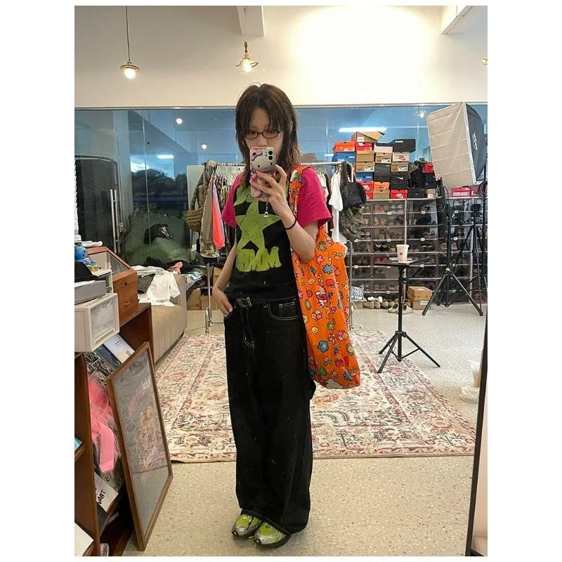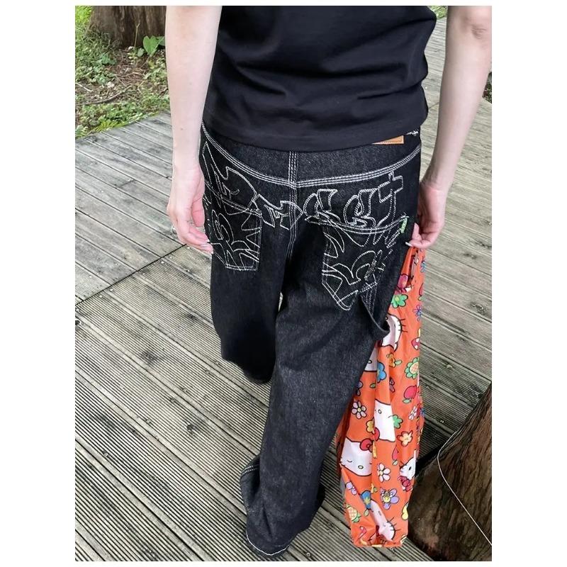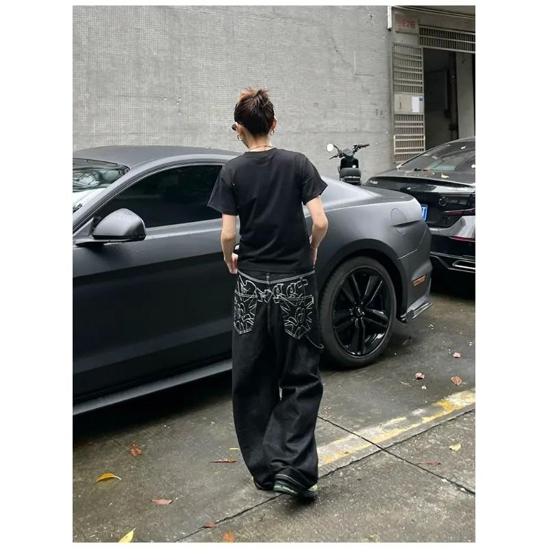 RogueWave Винтажная вышивка Черные джинсы Оверсайз Уличная одежда Гранж Y2k Мешковатые джинсовые брюки Джинсы бойфренда Хип-хоп Готика