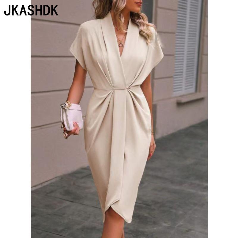 JKASHDK Женские модные летние весенние однотонные повседневные платья с v-образным вырезом и короткими рукавами и высокой талией — купить товар онлайн с бесплатной доставкой по всему миру!