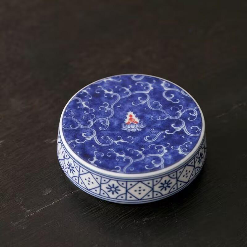 Синий и белый Будда, сидящий в позе лотоса, подставка, ретро, круглая, теплоизоляционная подкладка, подставка для чайной чашки в китайском стиле, крышка, защита от ожогов, набор для чая кунг-фу