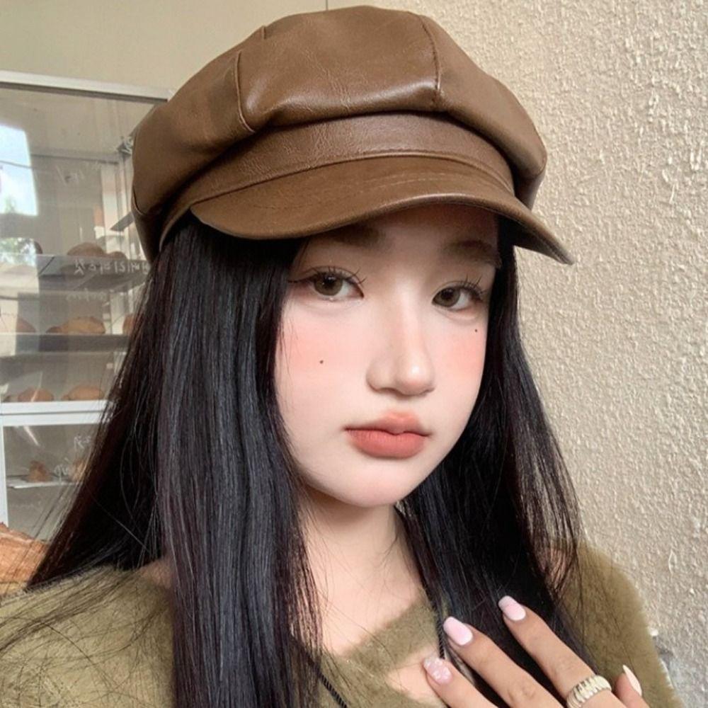 Однотонный берет из искусственной кожи, кепка, шляпа художника Харадзюку, ретро Y2k, берет, шляпа, мужская, женская — купить товар онлайн с бесплатной доставкой до всему миру!
