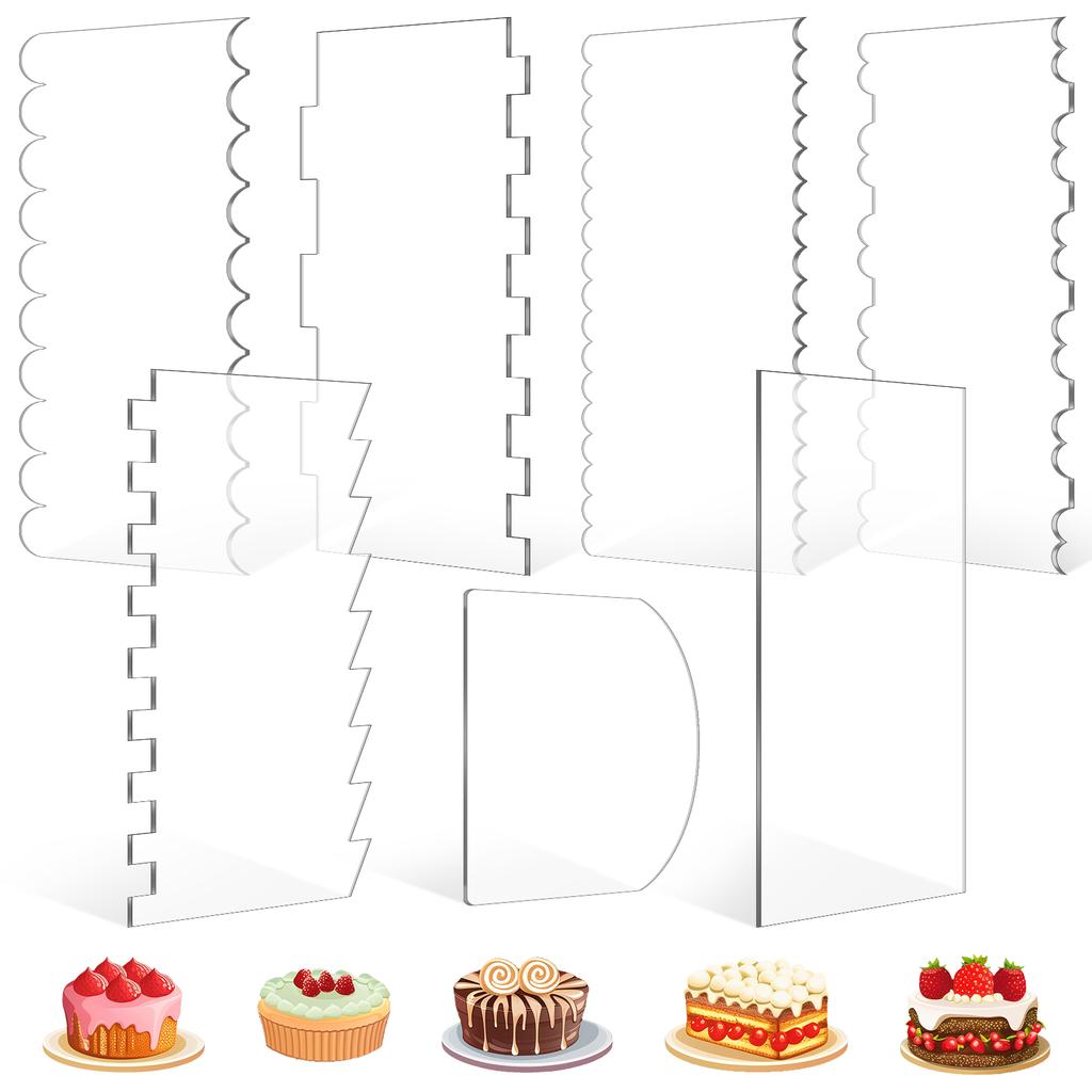 7 штук Прозрачный акриловый скребок для торта Разглаживатель Скребок для глазури Гребень для глазури торта Гребень для контура полос Форма для нарезки торта Для украшения