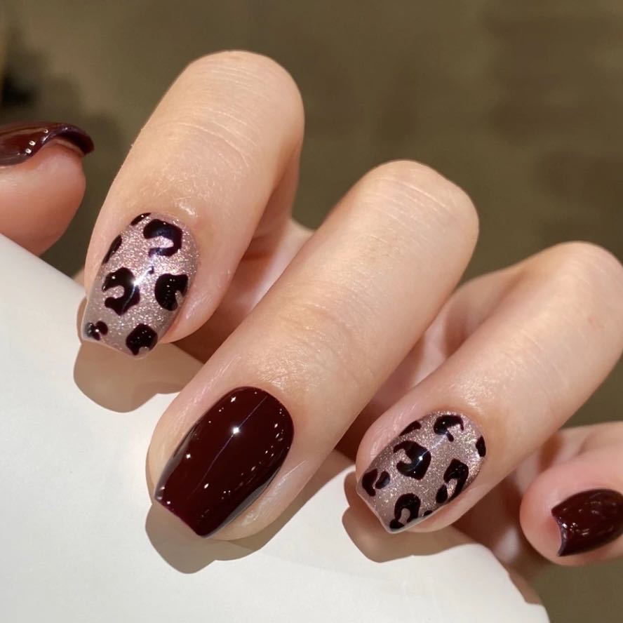 Чистый ручной работы фототерапевтический маникюр, Маникюрный патч с леопардовым принтом Майярда, Готовый продукт для ношения, Многоразовый