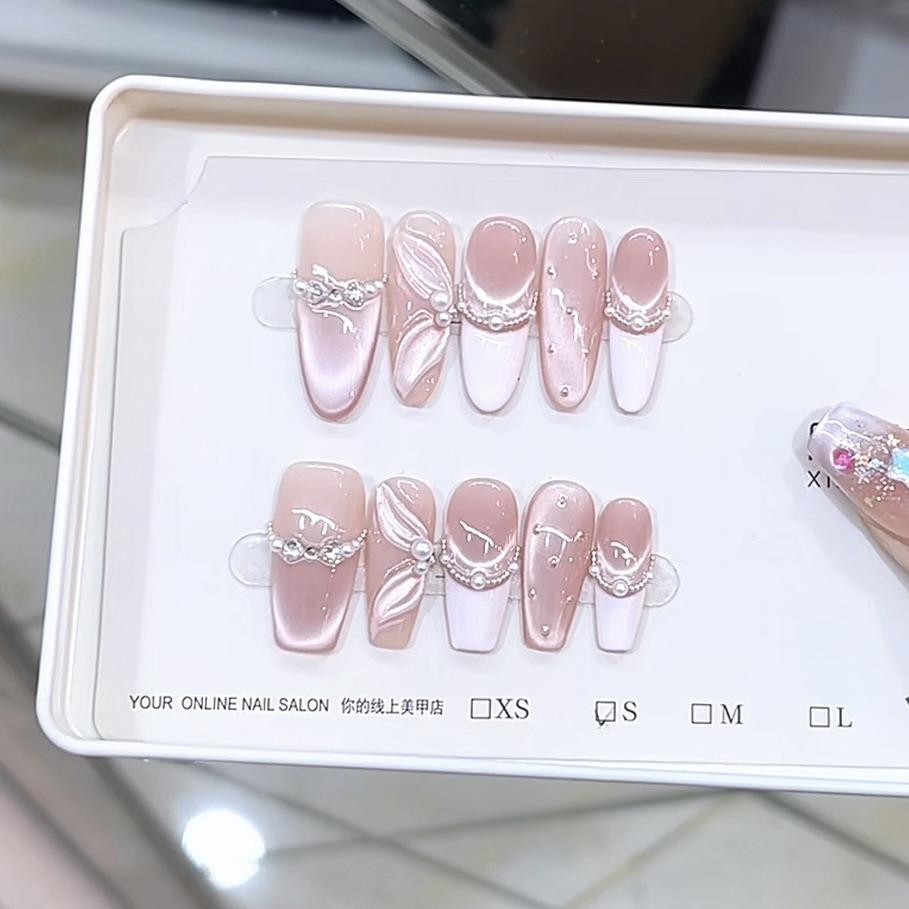 Плетеная вручную броня, трехмерный расписанный вручную патч для ногтей «Кошачий глаз» французский, с эффектом погони за светом