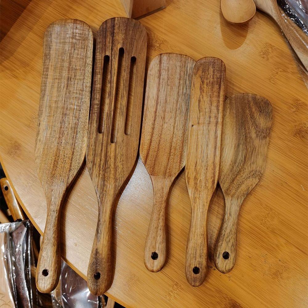 Natural Wood Long Handle Spatula Non Stick Kitchen Leakage Shovel Kitchen Tools