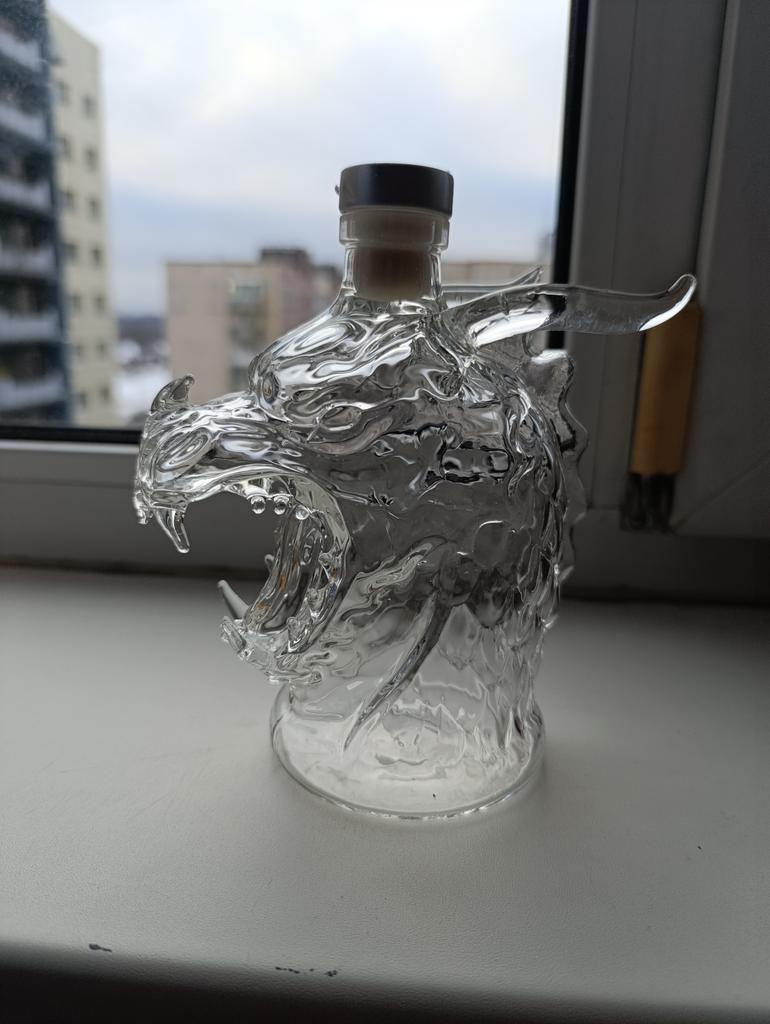 Прочное стекло устойчиво к царапинам, сохраняет чистоту и прозрачность, производя впечатление на гостей.. Яркий дизайн в виде головы волка/крана добавляет стильный штрих, делая его идеальным дополнением к любому бару или роскошным подарком..