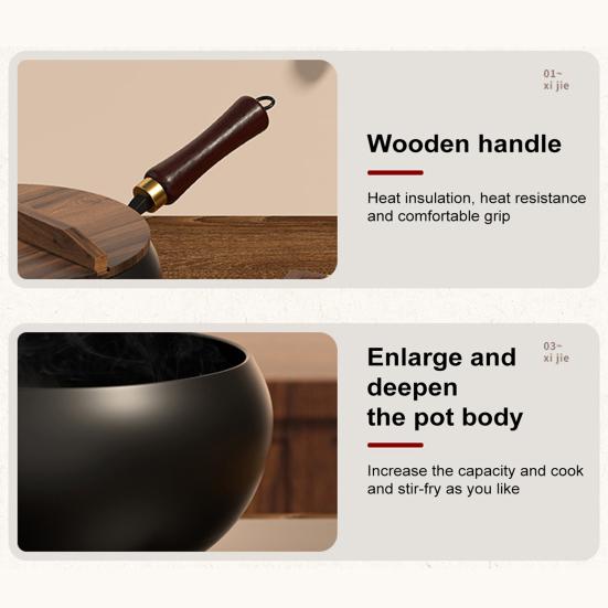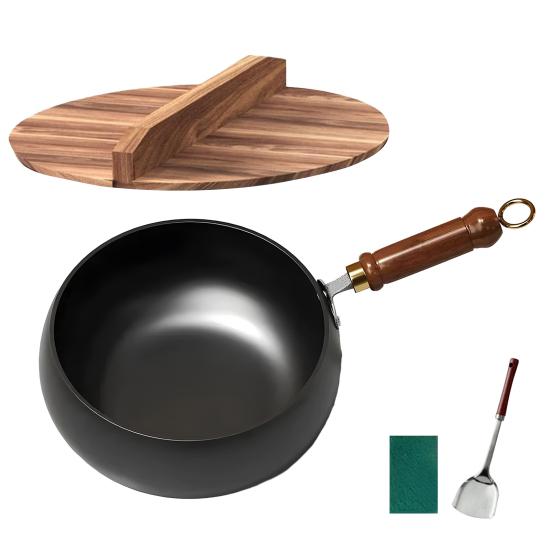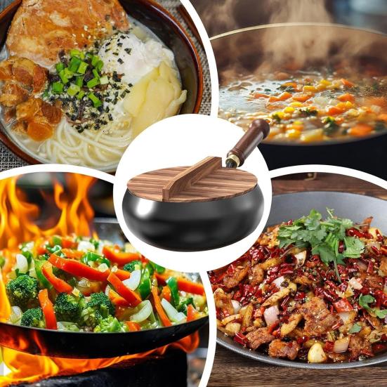 Покрытие из натурального дерева: Расширьте свои кулинарные возможности с помощью входящей в комплект деревянной крышки, которая не только сохраняет вкусы, но и ускоряет приготовление пищи, привнося в вашу кухню нотки деревенской элегантности.