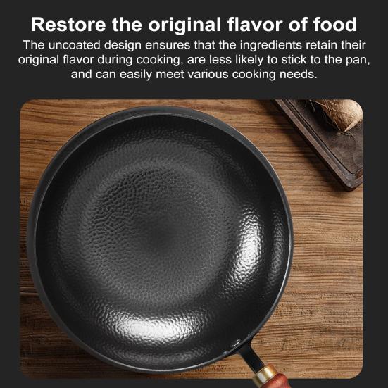 Универсальная совместимость с плитами: Легко переключайтесь между газовыми, индукционными и электрическими плитами с помощью этой универсальной чугунной сковороды-вок, которую можно использовать на различных платформах для приготовления пищи без ограничений.