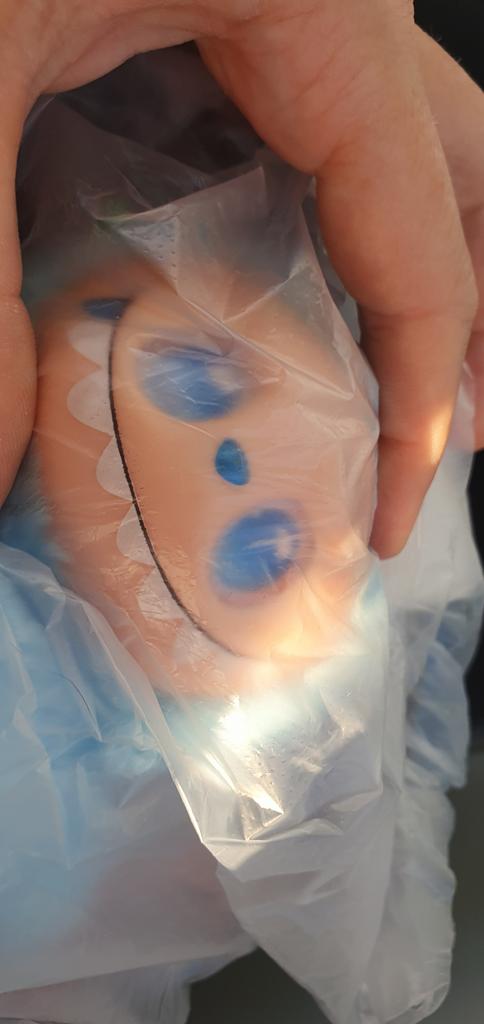 Коробка разобрана в пакете. Сам на вид ровный и целый. Всё крутится. Ножки пустые. Моська ровная.