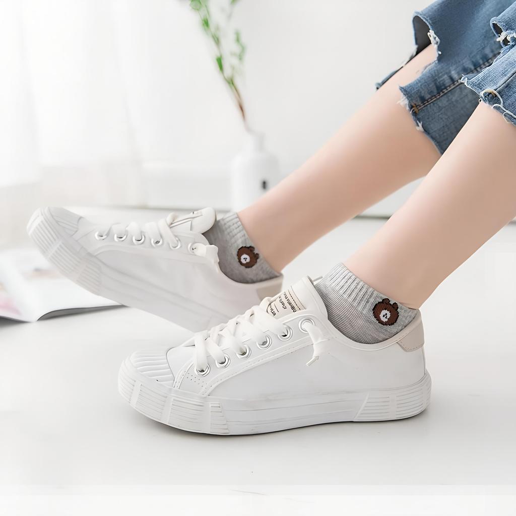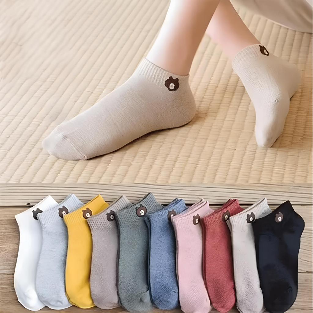 Набор из 10 пар женских носков с низким голенищем, с милым узором медведя, модные, дышащие, для женщин, повседневный стиль, удобные носки