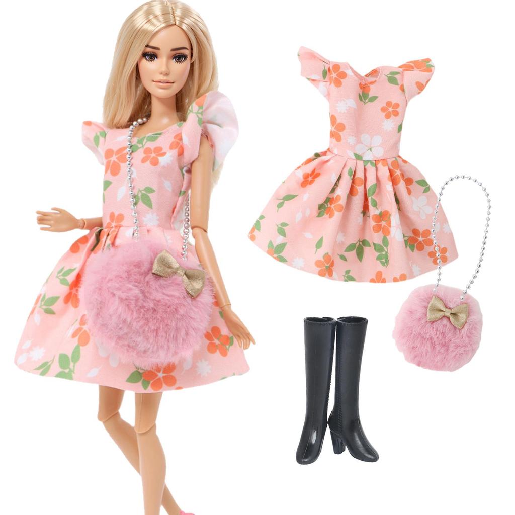 3 шт./компл. Модная одежда для куклы 30 см 11,5'' Платье для куклы-девочки с сумкой из мягкого меха, Туфли на высоком каблуке, Ботинки, Детская игрушка для игры, Подарок