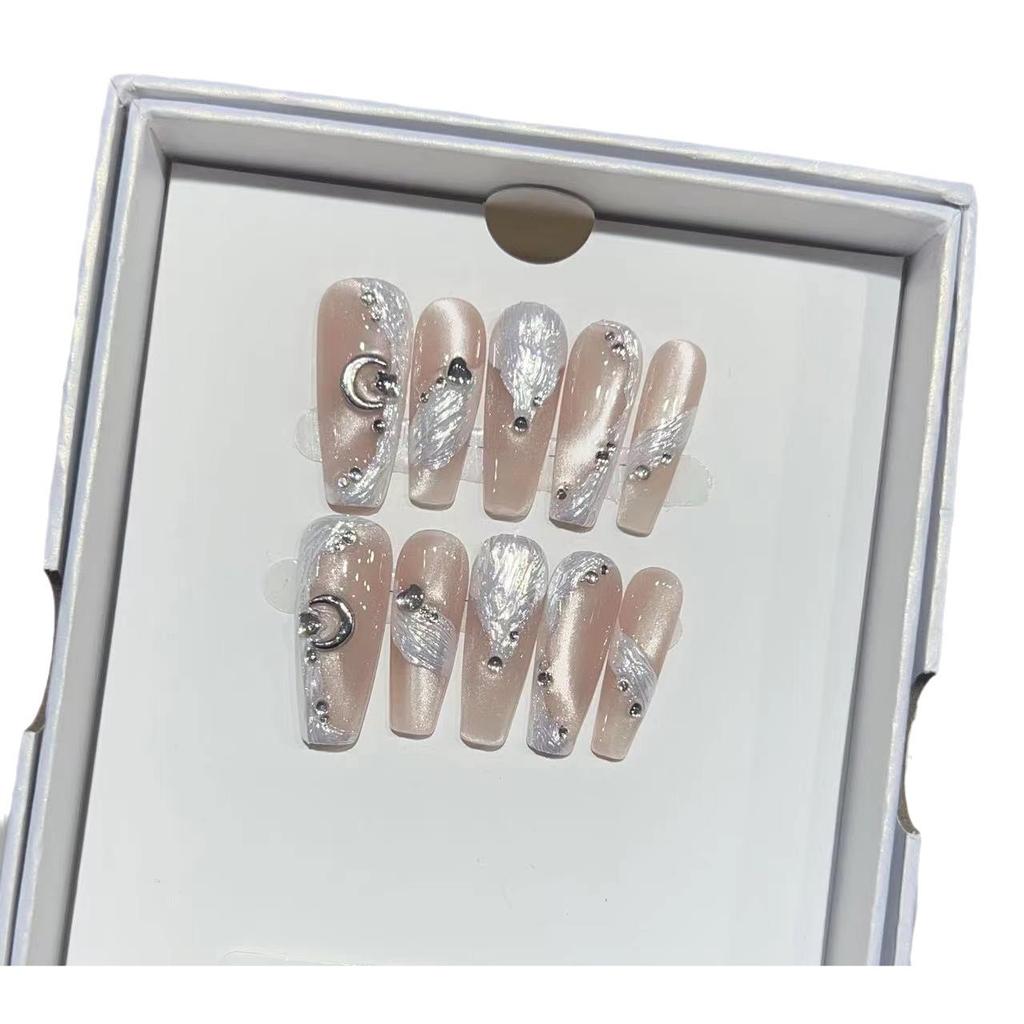 Ношение брони Ручная работа Ледяной нюдовый цвет Хайлайт Кошачий глаз Нейл-арт Пудра Авроры Стример Битый бриллиант Накладной ноготь Съемные ногти