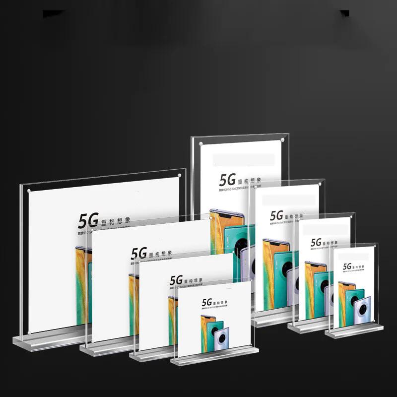 Прозрачный акриловый держатель для вывесок, двухсторонний держатель для меню, стойка для плакатов для свадьбы, ресторана, офиса, дома, фоторамка, подставка для дисплея