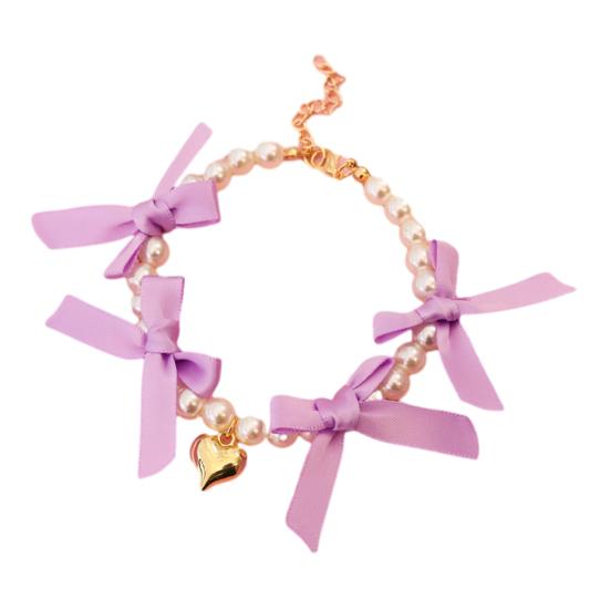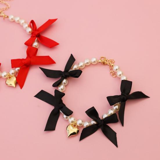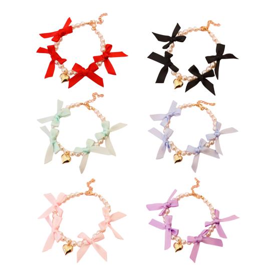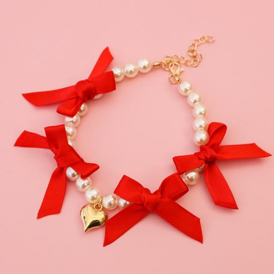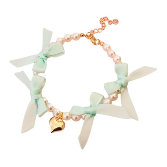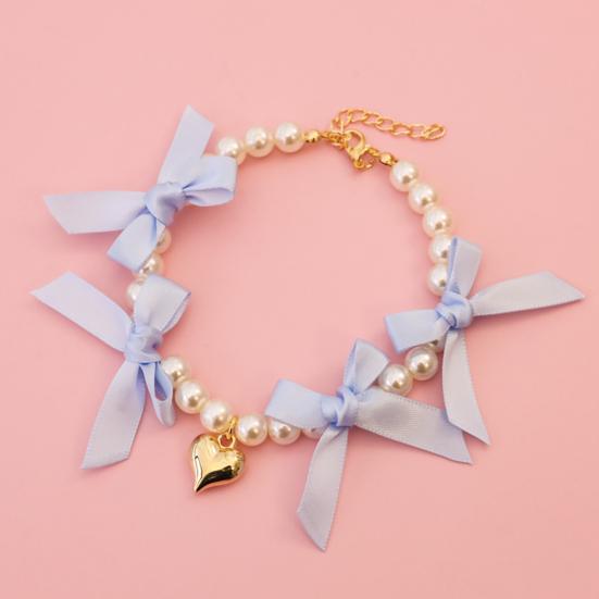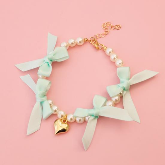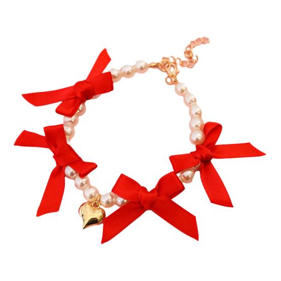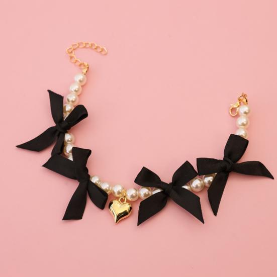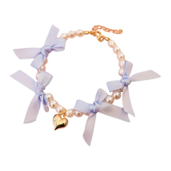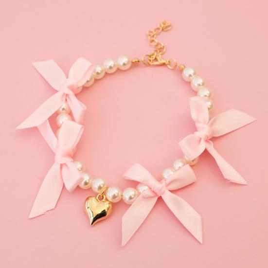 Повысьте очарование своего питомца с помощью этого очаровательного ошейника для животных с милой подвеской в виде сердца, украшенной жемчугом и бантиками.. Элементы ретро-банта и бронзовые металлические аксессуары добавляют нотку миловидности и уникального стиля.. Этот воротник, выполненный из элегантного искусственного жемчуга, выглядит нежно и роскошно, идеально подходит для повседневного ношения или особых случаев..
