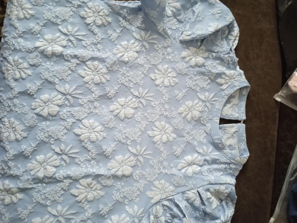 Красивая набивная ткань, но сшито не айс. Грубая обработка горловины, как то не так сидит в груди, может нужно подобрать другой бюстгальтер? Не хватает длины на ладонь.