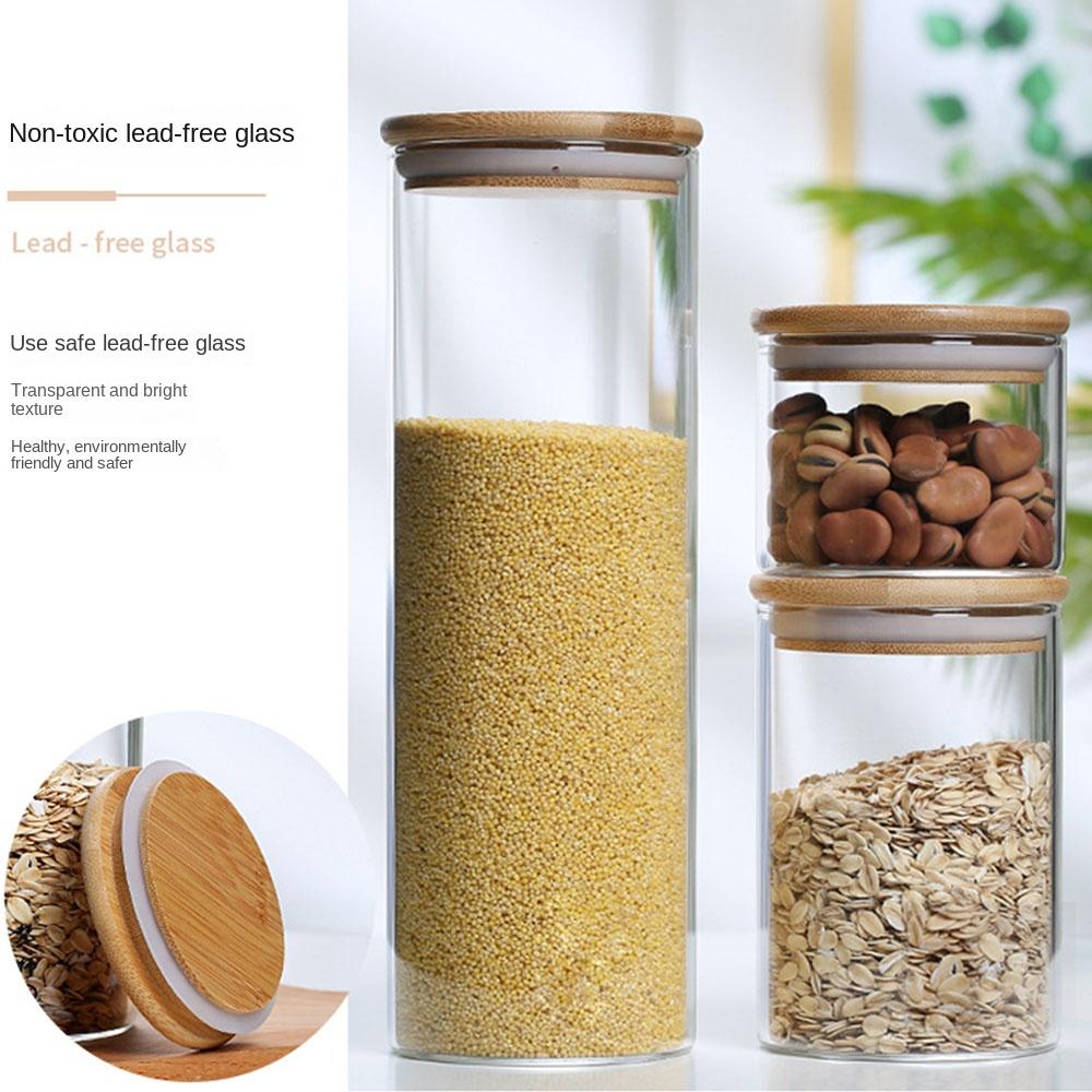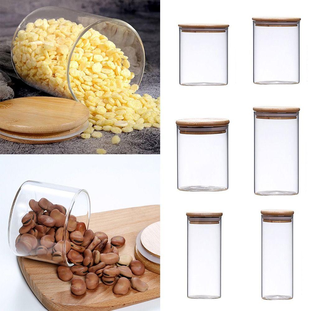 С бамбуковой крышкой Стеклянная банка Прозрачная бутылка для хранения Прочная герметичная банка Кухня