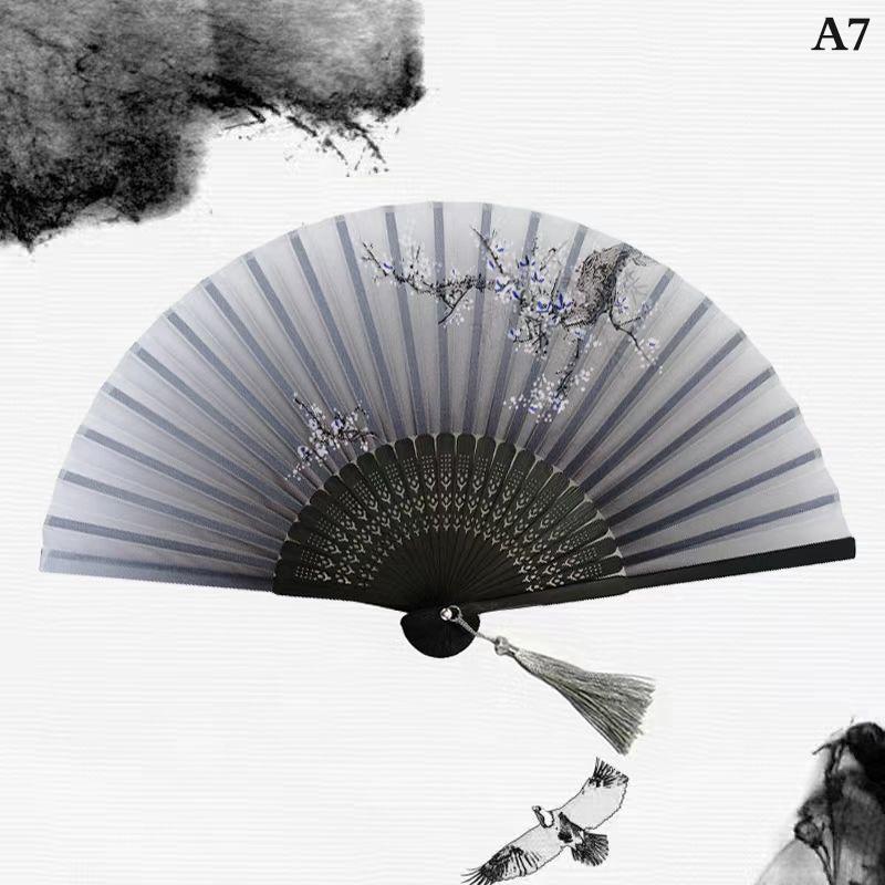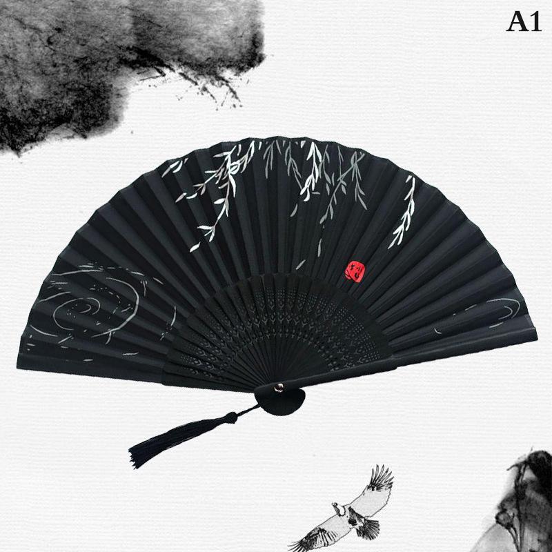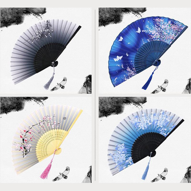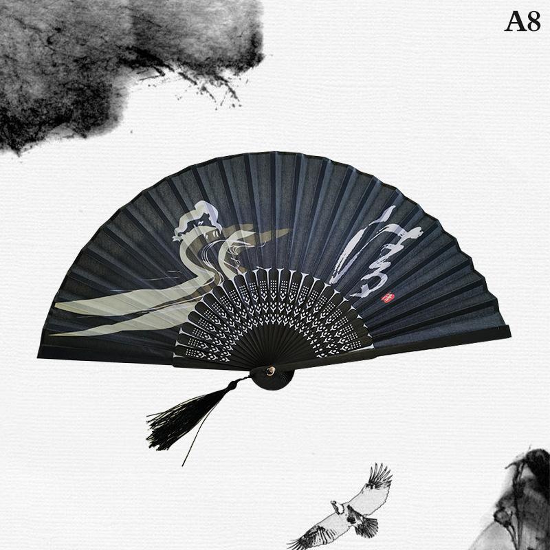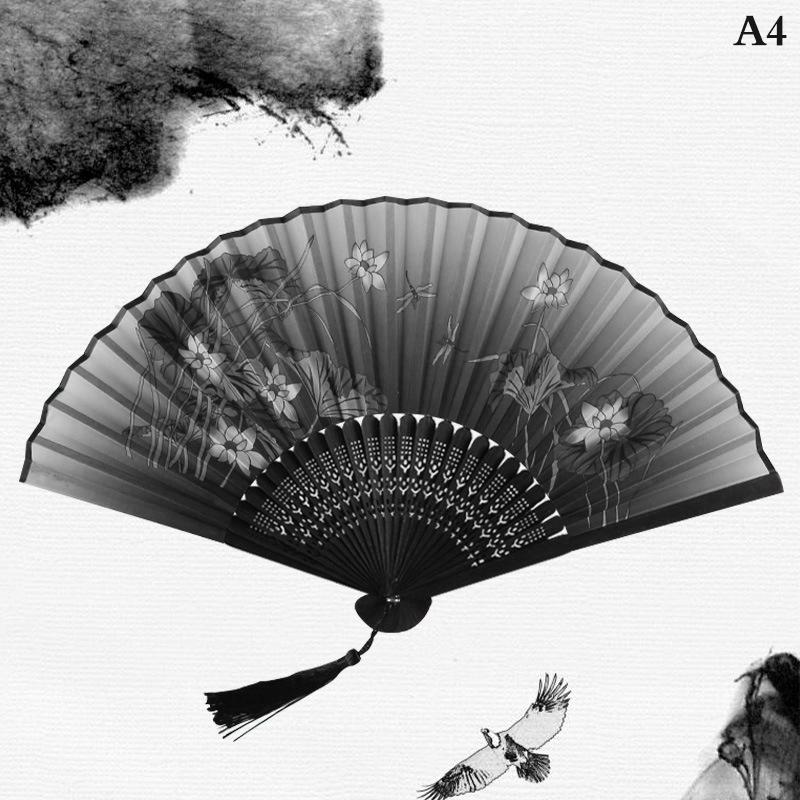 Уникальные подарки: Китайский традиционный ручной складной вентилятор в стиле чернил, с кисточкой и крышкой для вентилятора, является прекрасным подарком для женщин, девушек и дам, носящих различную одежду или танцевальную одежду.