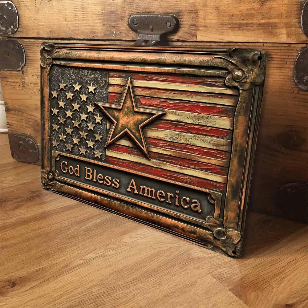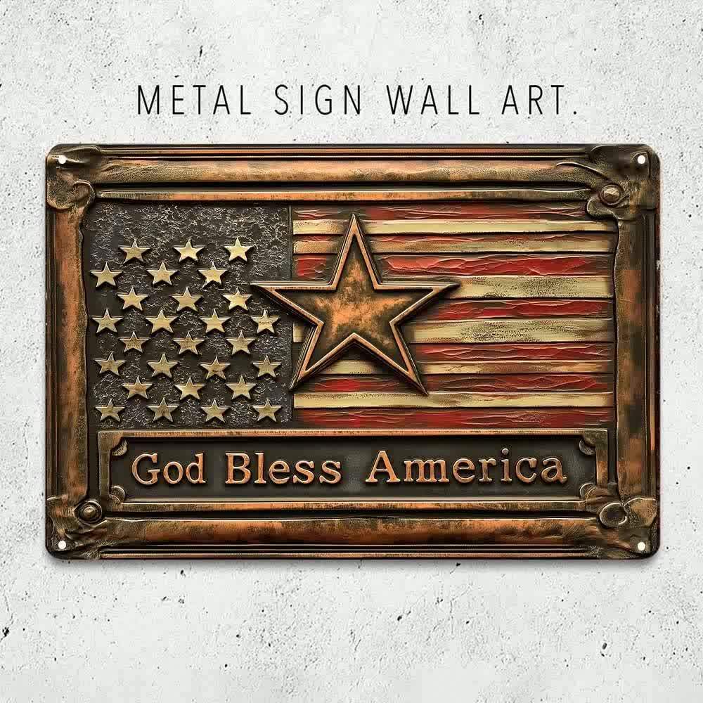 Алюминиевая табличка «Боже, благослови Америку» - Патриотический винтажный стиль, Улучшает эстетику комнаты, Празднования Дня памяти/Дня независимости