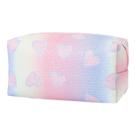 Выделитесь с этой косметичкой с очаровательными узорами на тему любви и стильными градиентными цветами.. Привлекательный внешний вид и плоское дно позволяют футляру стоять отдельно, обеспечивая легкий доступ к косметике для ежедневного использования.