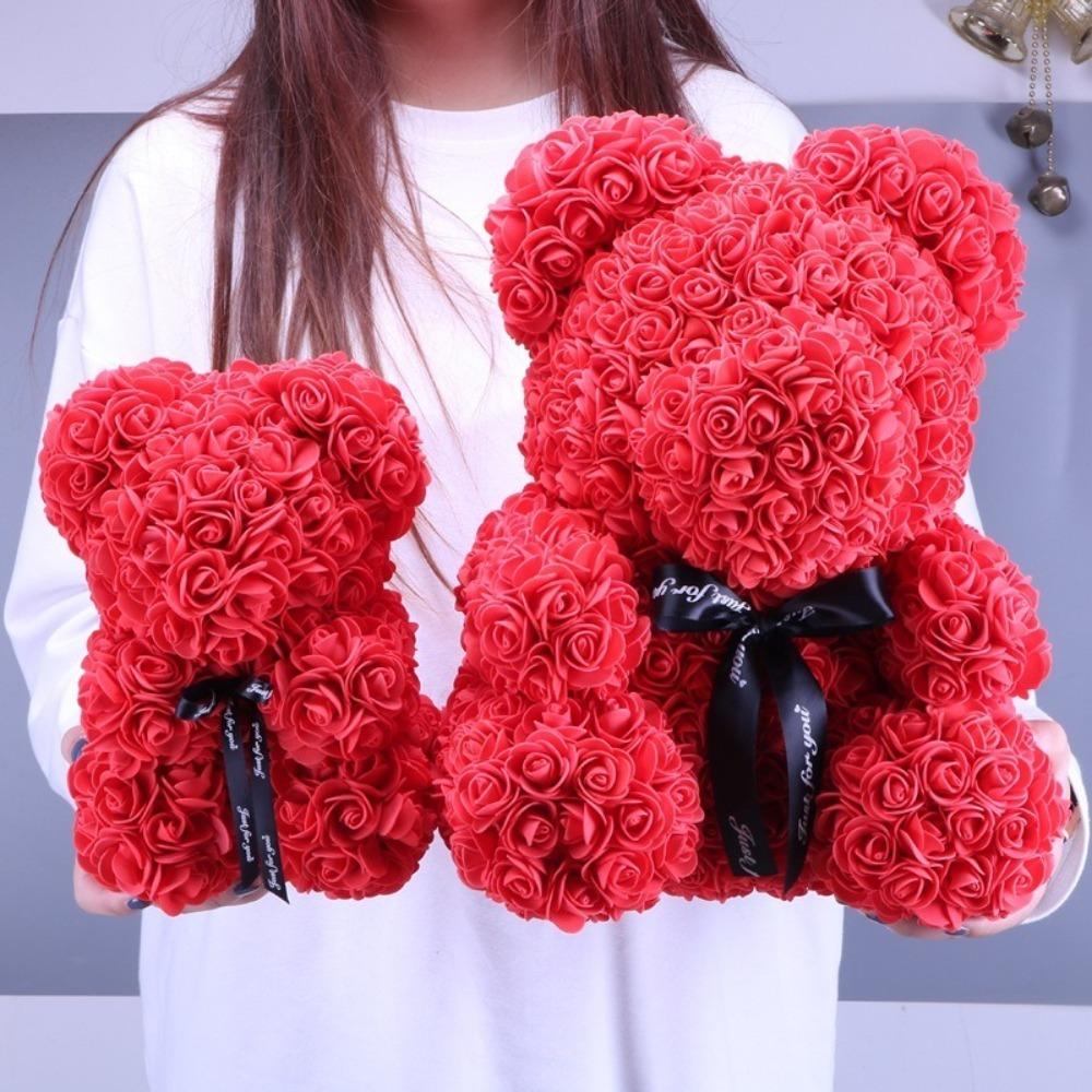 1. **Уникальная конструкция розы из вспененного полиэтилена**: Этот очаровательный плюшевый мишка изготовлен из высококачественных роз из пенополиэтилена, что придает ему уникальный и роскошный вид.. Пенопластовые розы мягкие на ощупь и искусно расположены, создавая потрясающего и реалистичного цветочного медведя, который станет прекрасным декоративным элементом.