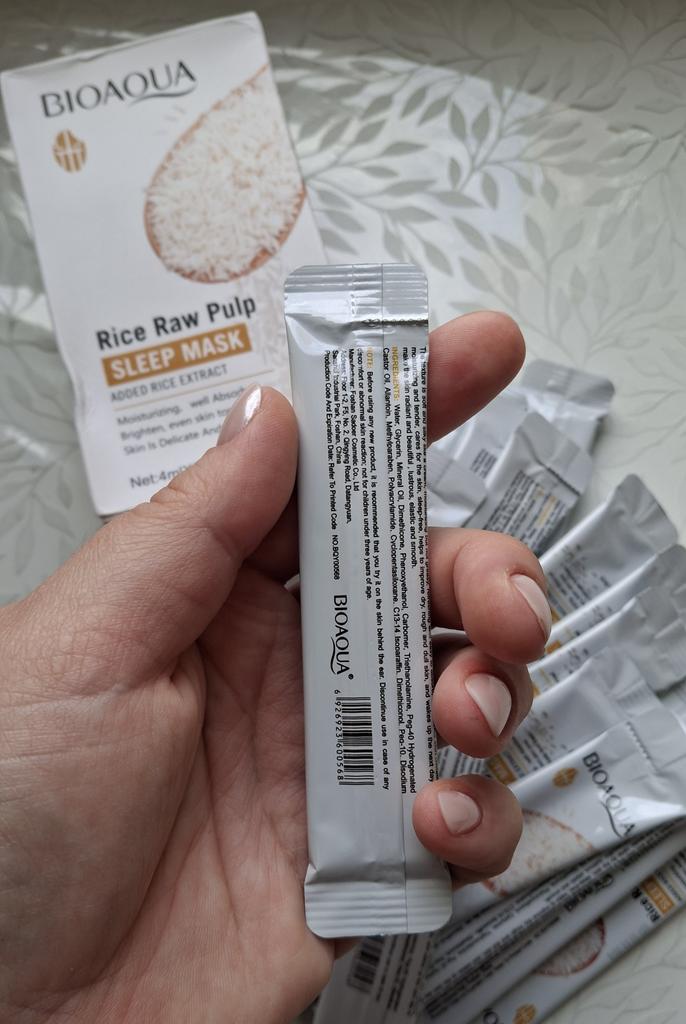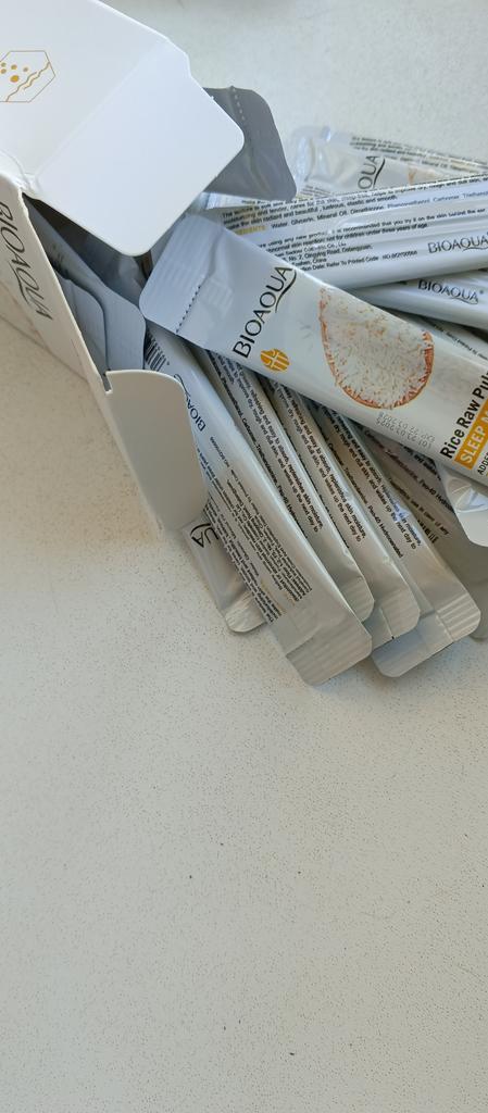 Рисовая ночная маска в стиках от BIOAQUA. Отличный вариант для ухода за кожей лица. Текстура у маски мягкая и шелковистая, напоминает крем, при этом она не жирная и быстро впитывается. Маска хорошо увлажняет, питает кожу, придаёт ей нежность и упругость. После использования кожа становится более сияющей, гладкой и эластичной. Компактная упаковка в стиках удобна для дозировки и хранения. Средство восстанавливает и освежает кожу за ночь. Легко наносится, не оставляет ощущения тяжести или липкости. В составе есть экстракты риса и других растительных компонентов, которые ухаживают за кожей. Рекомендации по применению: после очищения нанести равномерно по лицу, избегая области вокруг глаз и губ, оставить на ночь, утром умыться. В целом, маска BIOAQUA с рисовым экстрактом хорошо подходит для поддержания увлажнённости и сияния кожи при регулярном использовании. ⭐ Продавец упаковал товар в почтовый конверт с пупыркой внутри. ⭐ Трек номер отслеживался до почтового отделения. ⭐ В приложении пришло уведомление о готовности к выдаче заказа. ⭐ Доставка в Петербург заняла 24 дня.