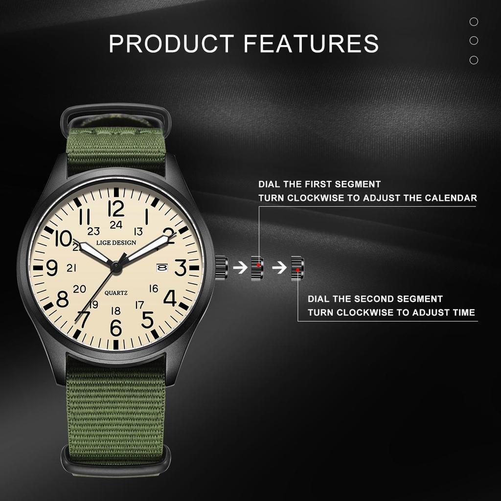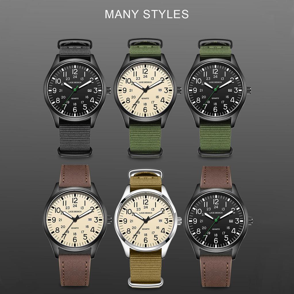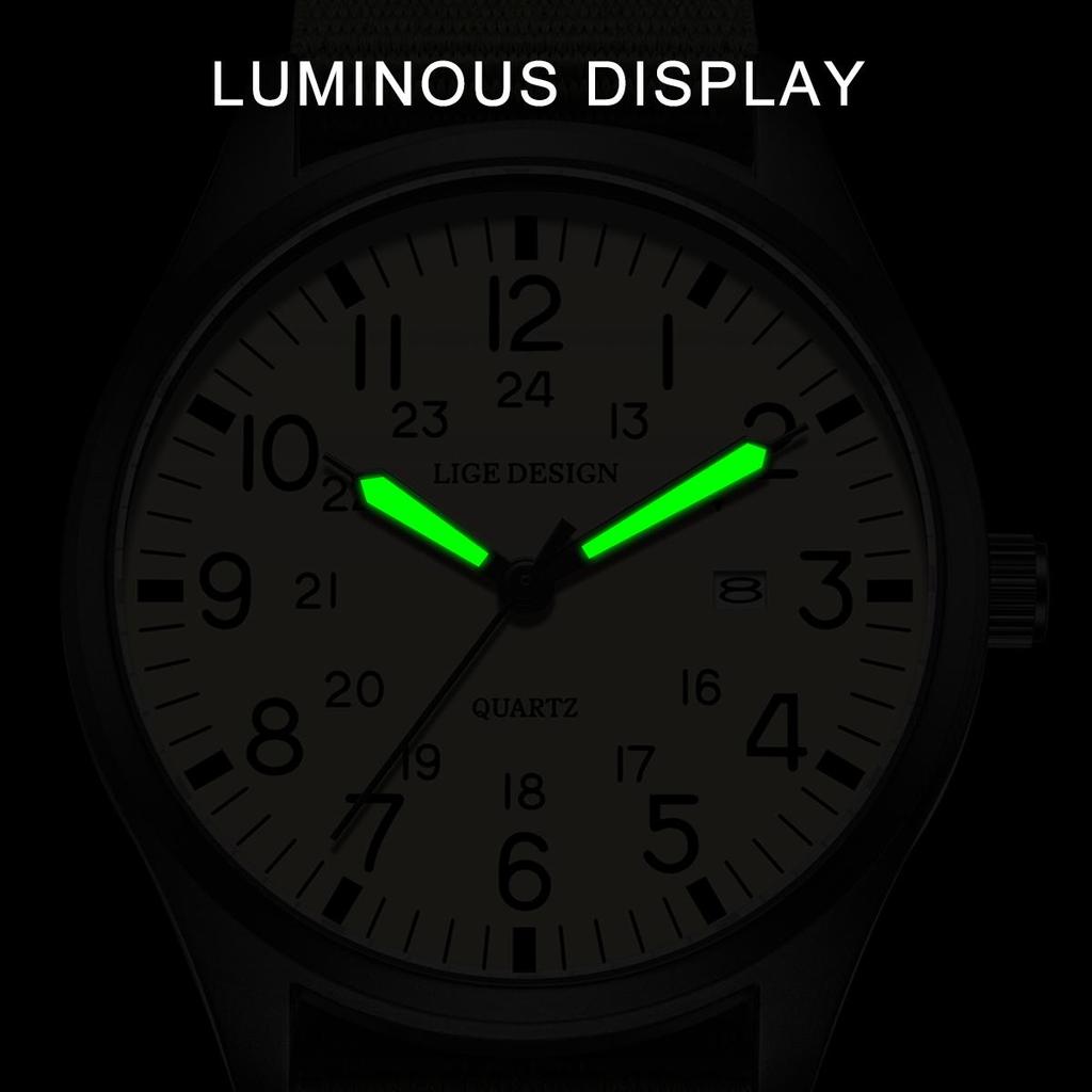 LIGE Наручные мужские часы с нейлоновым ремешком, спортивные, водонепроницаемые, кварцевые