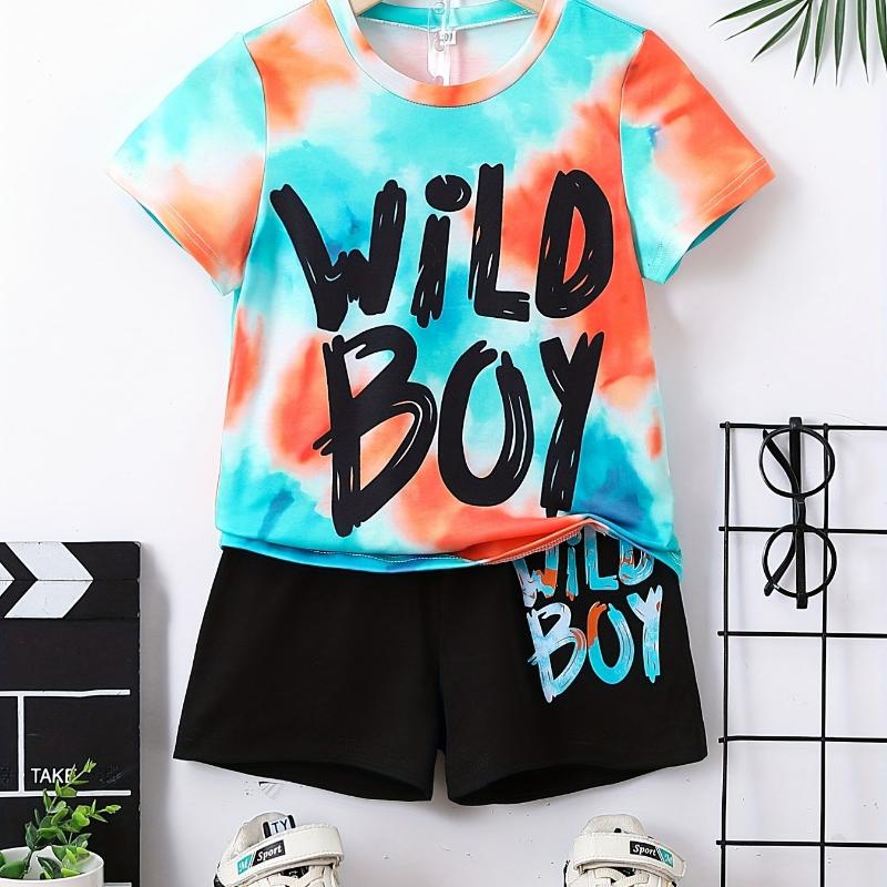 2024 Детский костюм для мальчика девочки с коротким рукавом Детские комплекты Тай-дай 3D принт букв Детская летняя одежда Детская одежда