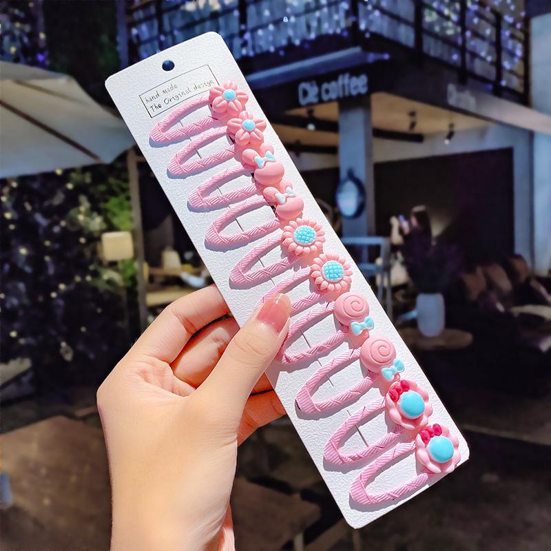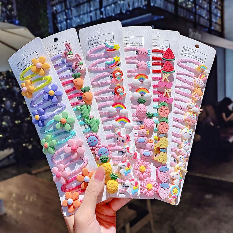 10pcs/set Girls Cute Cartoon Unicorn Rainbow Flower Hair Clips Kids Sweet Hair Decorate Bangs Hairpin Barrettes Hair Accessories
