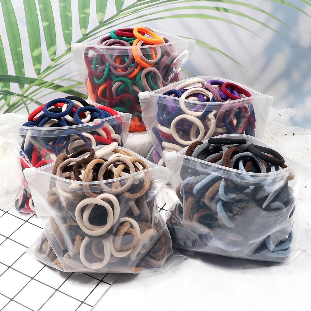 100/200 шт. Эластичные женские резинки для волос, завязки 4 см, темные цвета, повязка на голову, аксессуары для волос для девочек, головные уборы, не повреждающие волосы