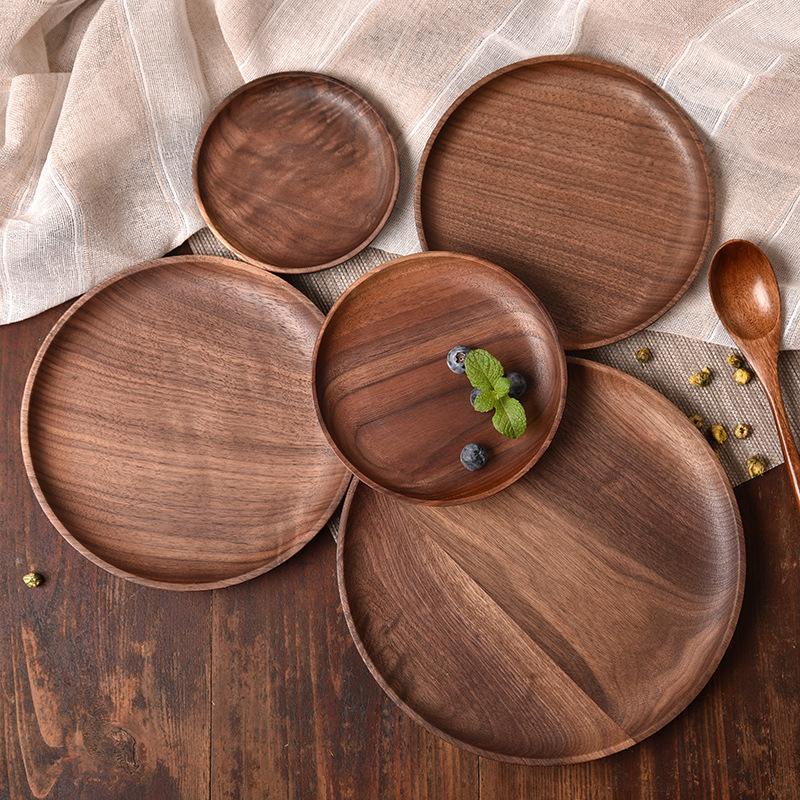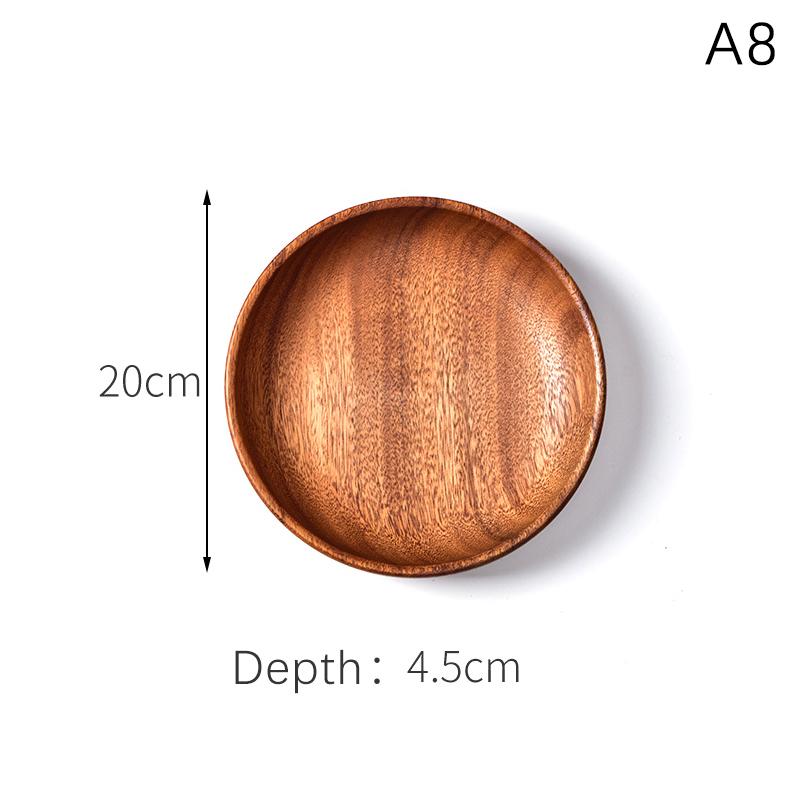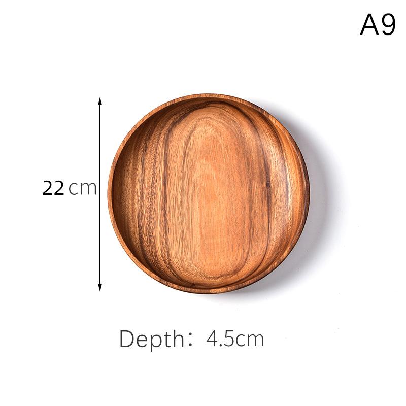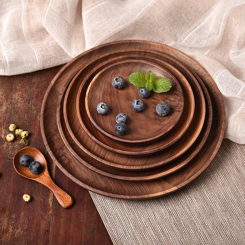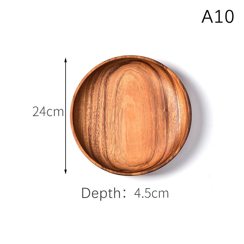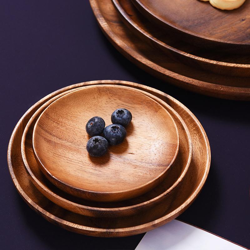 Деревянный поднос, круглый сервировочный поднос, ретро-тарелки из акации, поднос для фруктового салата, десерта, поднос для закусок, тарелка для еды, поднос для хранения тарелок